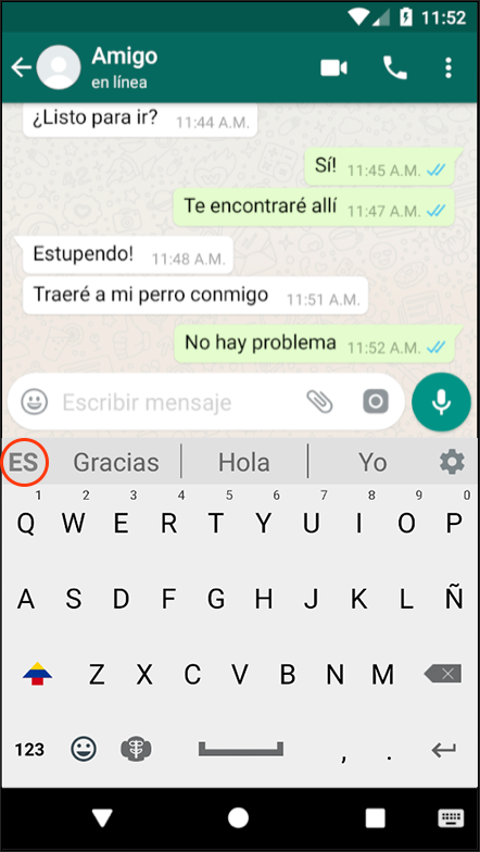 Cambia a 'Colombiano' como tu 'Teclado Predeterminado'.