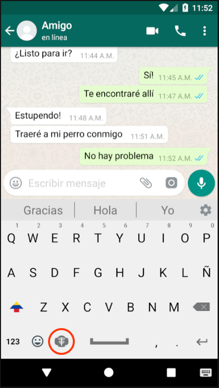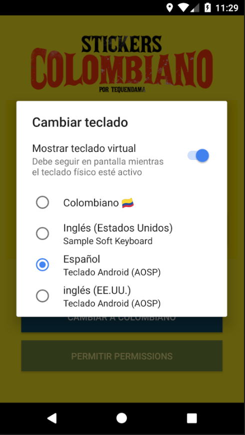 Deberá habilitar el teclado en la configuración, prendiendo 'Colombiano App' en 'Teclado Virtual’ y 'Teclado Predeterminado'.