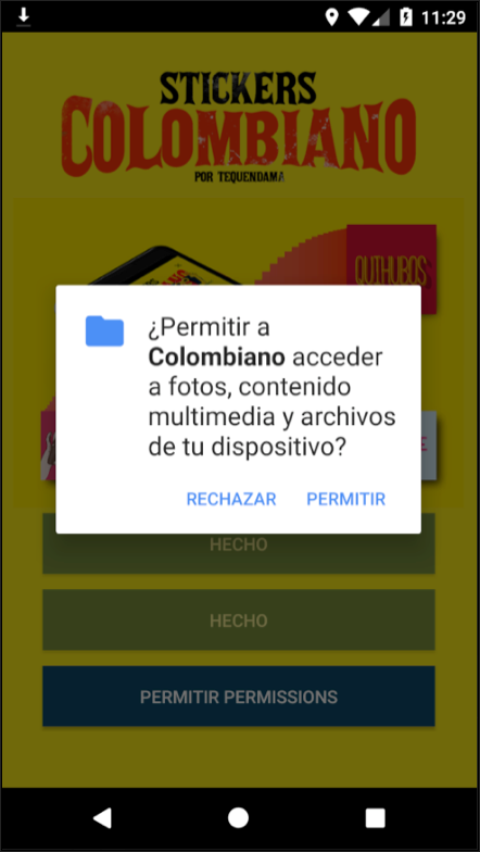Deberá activar los permisos de almacenamiento para que instalemos calcomanías en su teléfono.